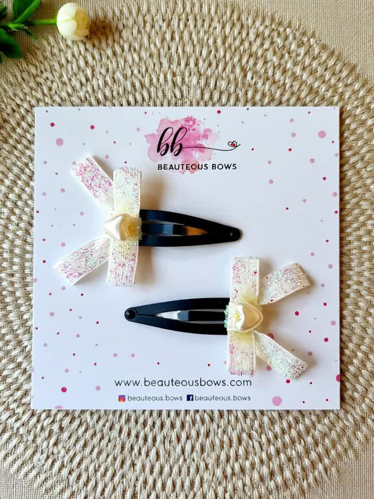White Glitter Bow Set