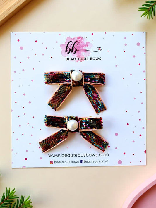 Multicolour Glitter Bow Set