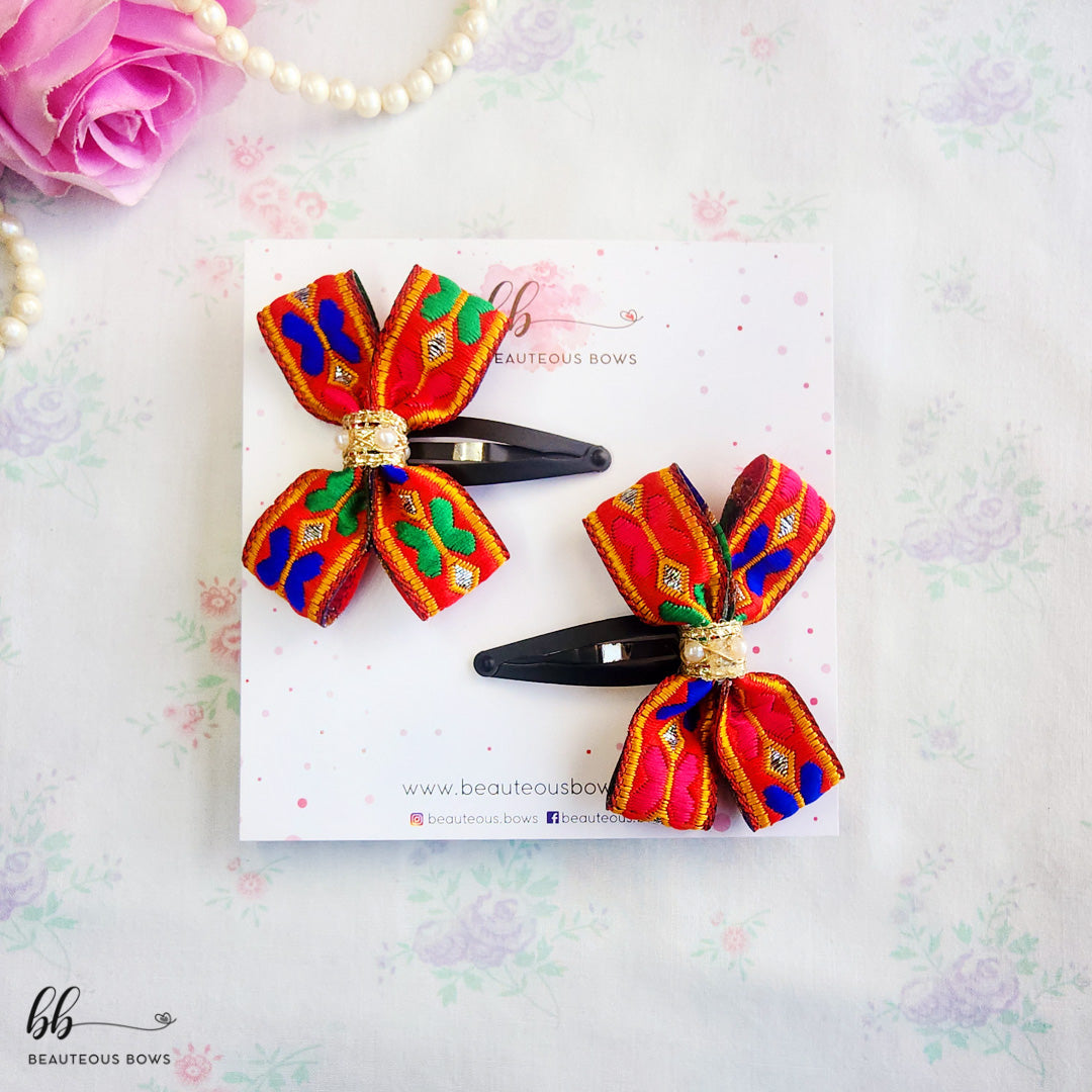 Traditional mini bows perfect to hold kids hair in place at traditional occasions. Statement Hair Accessory suitable for young girls and women, each bow is handcrafted with finesse and quality materials.