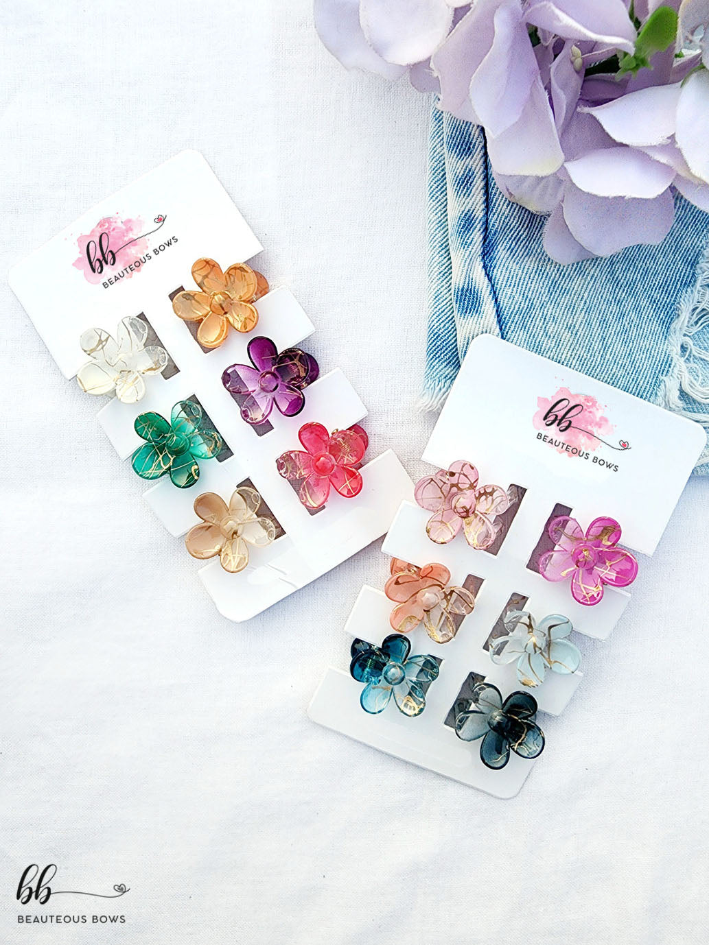 Add a little bloom to everyday hairstyles with this adorable Mini Flower Claw Set of 6. Each set features six petite, dainty flower-shaped claws in a mix of soft pastels and vibrant jewel tones, designed to complement any outfit.